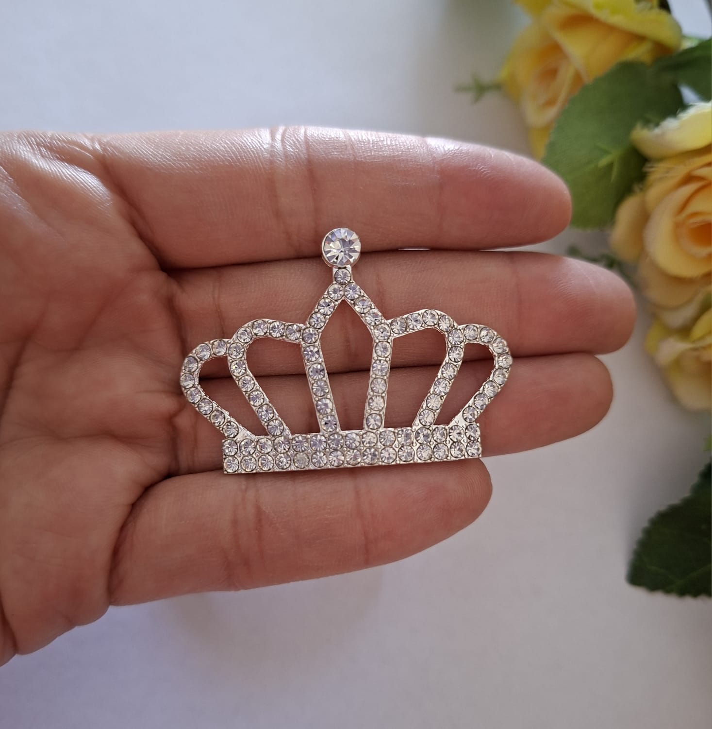 Aplique Coroa Metal com Strass Prata 6cm com 1 Unidade.