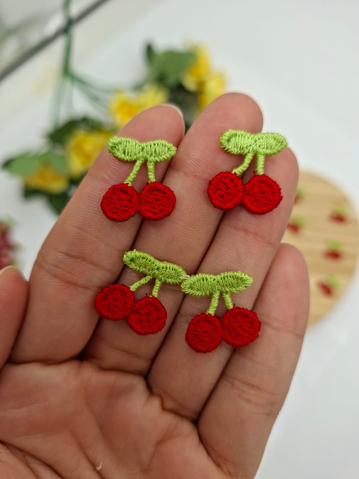 Aplique Mini Cereja Bordada 2cm com 5 unidade
