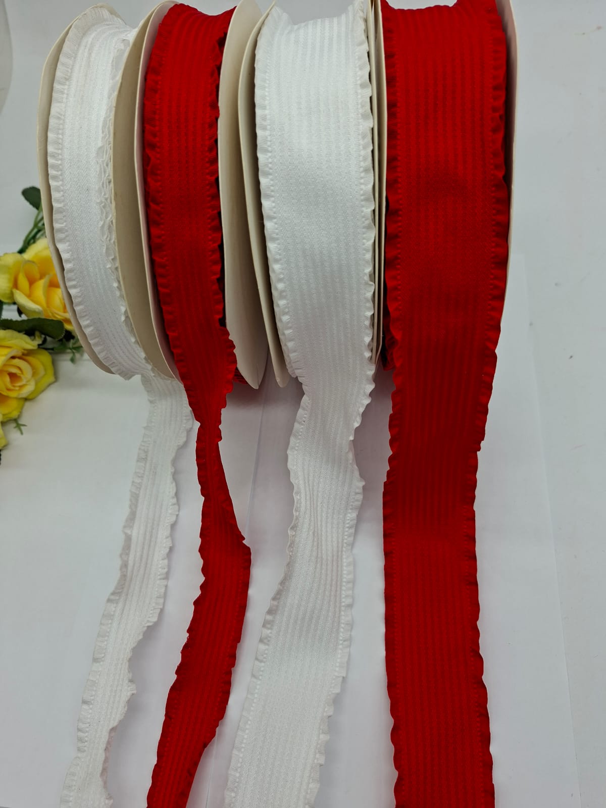 Fita Importada com Babado Vermelha ou Branca com 1 metro